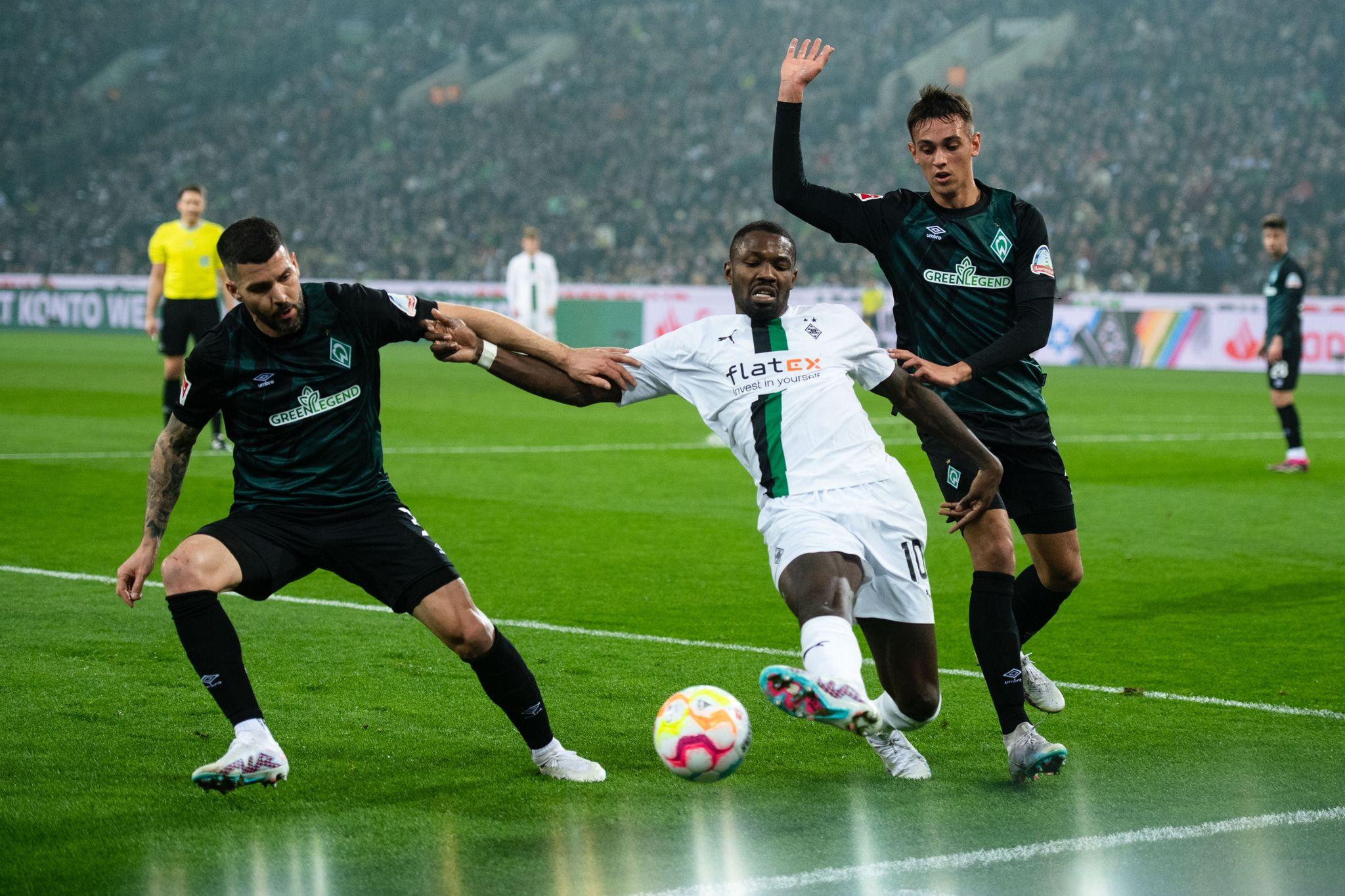 Spieltag in der Bundesliga wird mit dem Spiel Gladbach gegen Bremen eröffnet. Der SV Werder Bremen holt dank eines Doppelpacks von Marvin Ducksch beim 22 00 einen Punkt bei Borussia Mönchengladbach. März 2023 im Bundesliga-Heimspiel gegen Werder Bremen und Mitchell Weiser.
