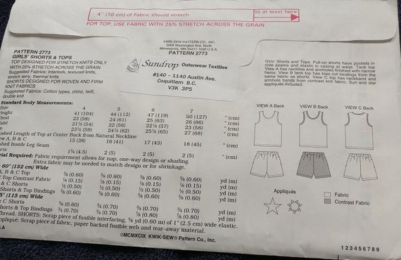 Kwik Sew Girls Top Shorts Pattern 2773 Etsy
